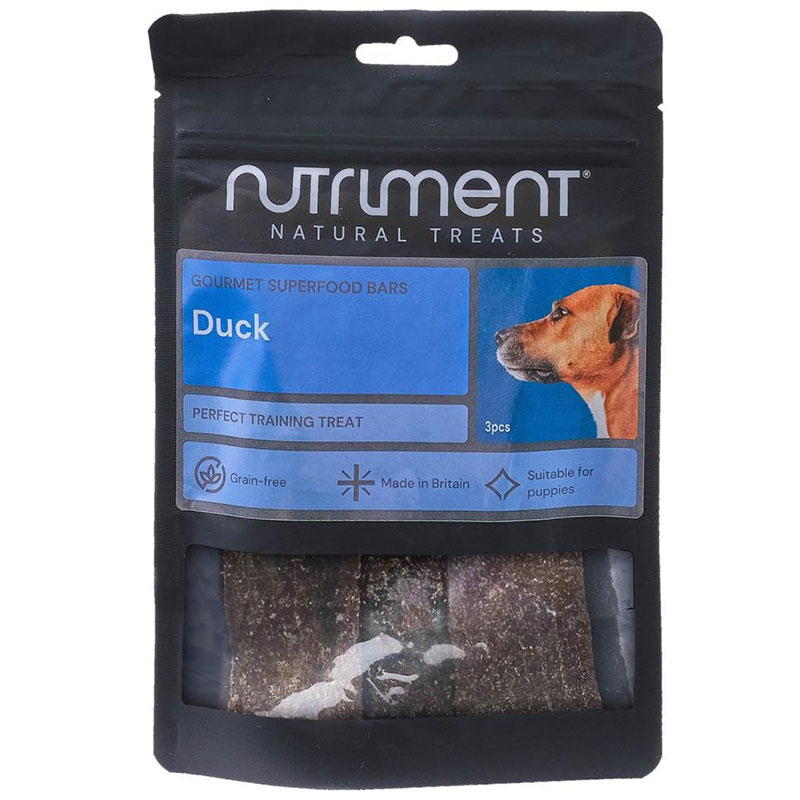 Forkæl din hund med Nutriment Superfood Bars med and – nu i en praktisk 3-pak, perfekt til både hverdag og eventyr. Disse lækre snackbarer kombinerer høj smag med naturlige ingredienser, så din hund får både nydelse og næring i hver bid.