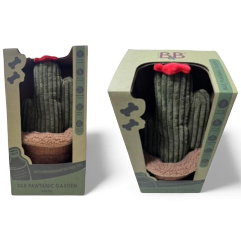 Legetøj og snusetæppe, forklædt som en smuk og sjov plante. B&B Pawtanic snuseplante, ligner en dekorativ potteplante, men den gemmer på en kreativ overraskelse. Planten kan nemlig foldes ud til et stort snusetæppe, fyldt med lommer, folder og gemmesteder. Alt sammen noget, som stimulerer din hunds naturlige søgeinstinkt.
