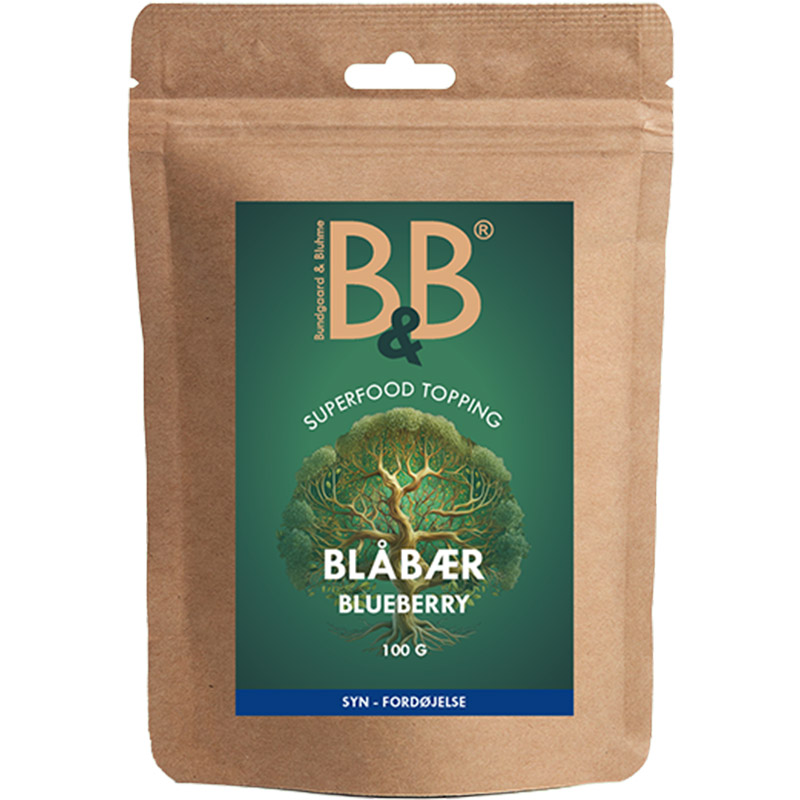 Blåbær har et naturligt indhold af vitamin C, K og E, samt zink og mangan, som kan medvirke til at støtte et sundt immunforsvar. Bærret kan hjælpe med at beskytte mod frie radikaler, som er en vigtig faktor for en sund aldringsproces og generel trivsel.