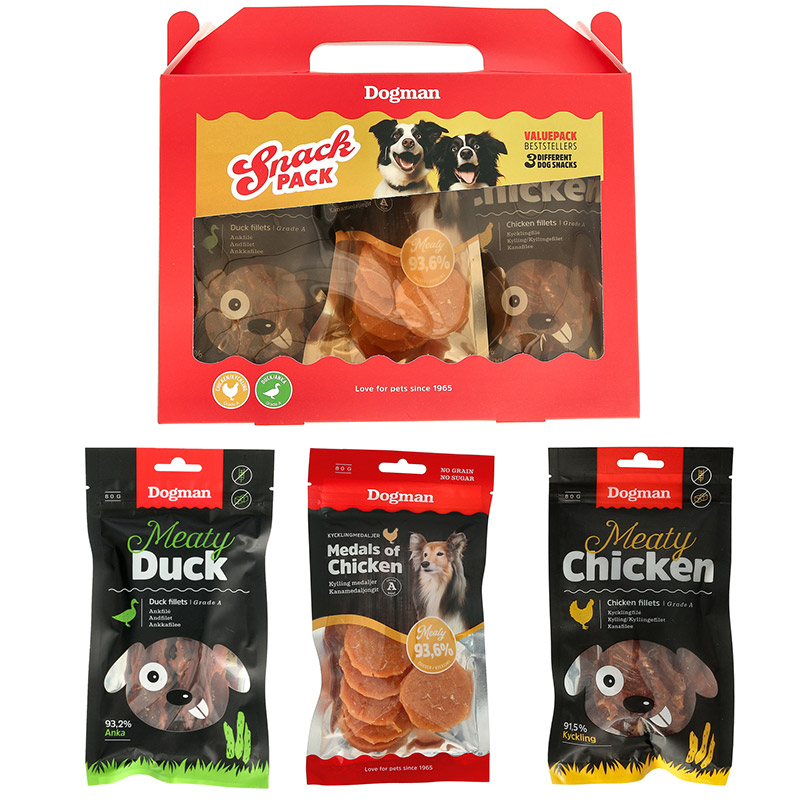 Dogmans bedste uimodståelige hundegodbidder i en valuepack. Passer perfekt til kræsne hunde! Kan brydes til mindre stykker. Gives som belønning udover en balanceret kost.