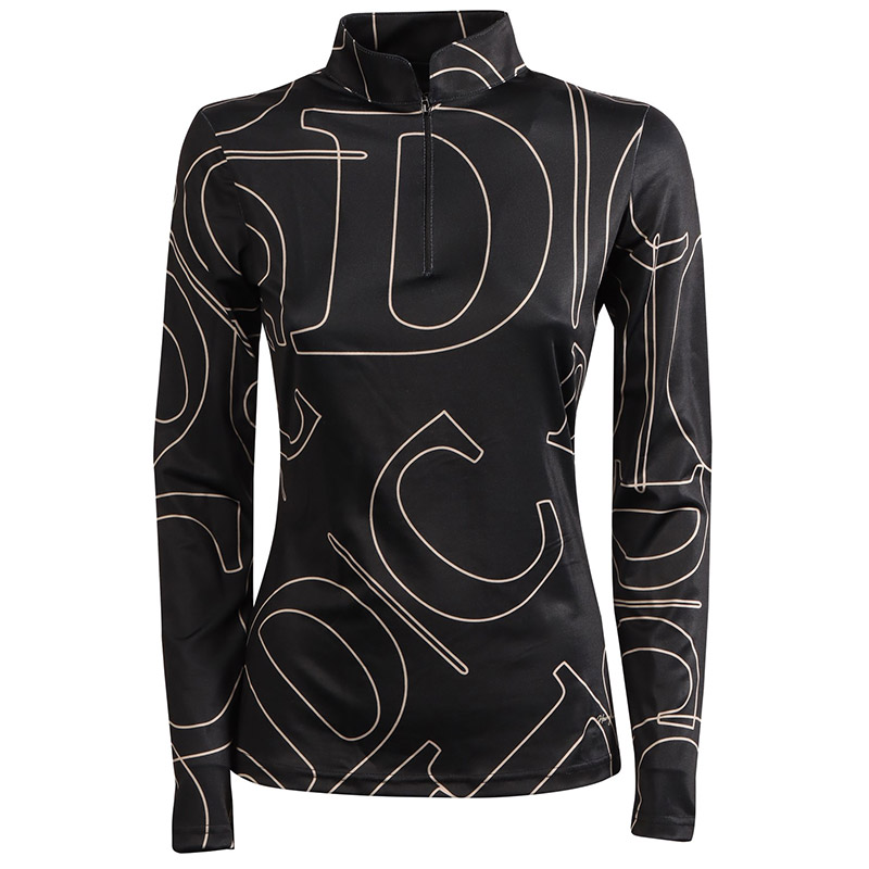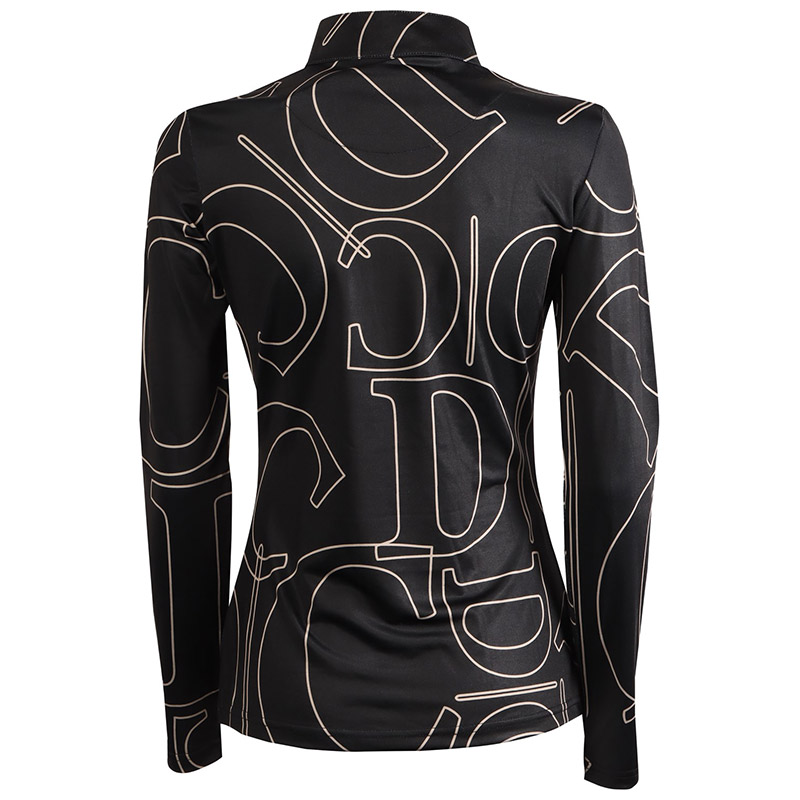 Langærmet trøje med opretstående krave, der buer ind i en kort lynlås. Har et stort, tilfældigt placeret Denici Cavalli all-over print over hele trøjen, hvilket gør hver enkelt unik.