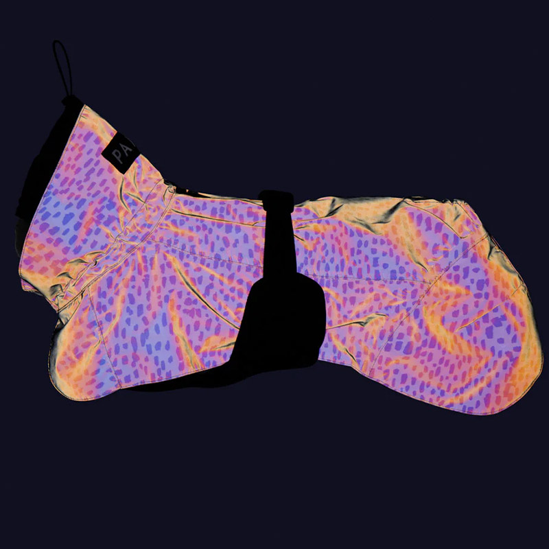 Det ydereste lag skiller sig ud fra Paikkas andre regnfrakker. Udover, at frakken er 100% refleks, så er 2.0 regnfrakken også selvlysende i mørke. Glow-funktionen virker i 90-120 min og aktiveres, når regnfrakken har absorberet sollys. Når den selvlysende effekt aftager, skal frakken absorbere sollys igen. Det giver din hund en synlighed udover det sædvanlige.