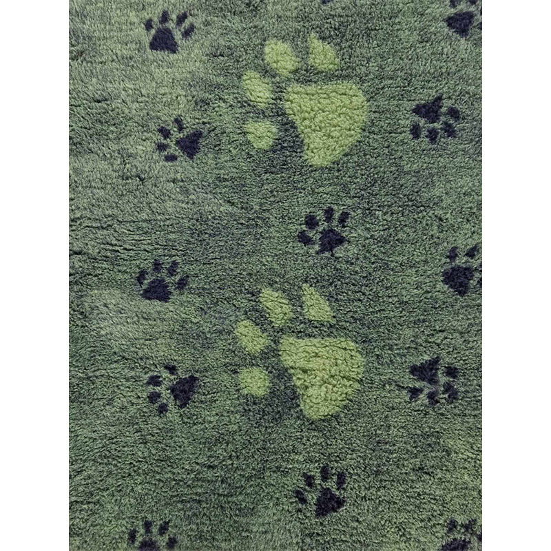 VetBed-tæppe i olivengrøn meleret med store olivengrønne poter og små sorte poter – en stilfuld og praktisk løsning til din hund