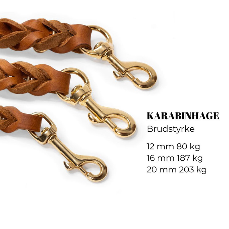 Opdag de håndlavede liner til hunde, skabt med omhu og kvalitet. Fremstillet i EU -fra det ægte læder til olieringen, for et både holdbart, smidigt og kvalitetssikret produkt. Tre-trins regulering i et stilfuldt, behageligt og stærkt design, da karabinhagerne er trækprøvede for ekstra sikkerhed. Oplev forskellen.